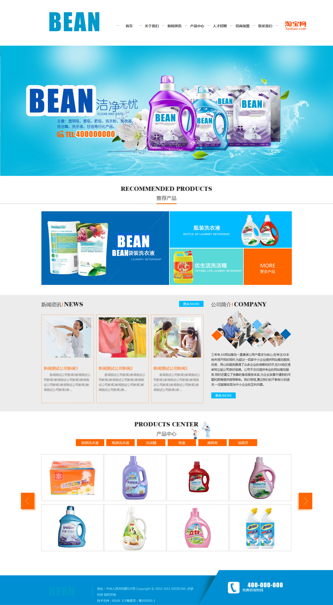 日化用品洗涤行业通用企业模板,网站源码非常简介大气,图片展示效果非常突出。