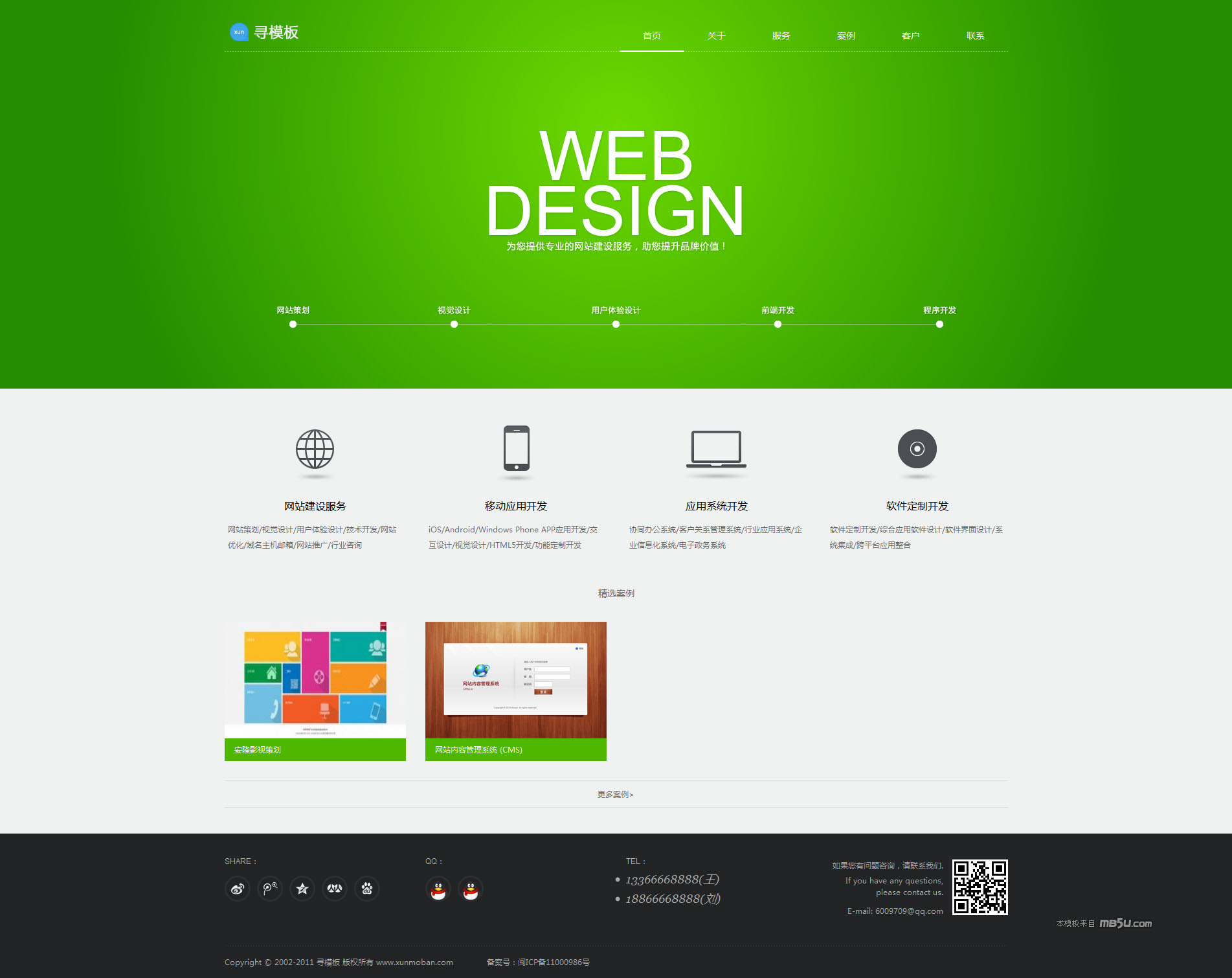 适合设计类、网络公司、客户案例、企业信息展示网站使用,很好的提升企业形象;