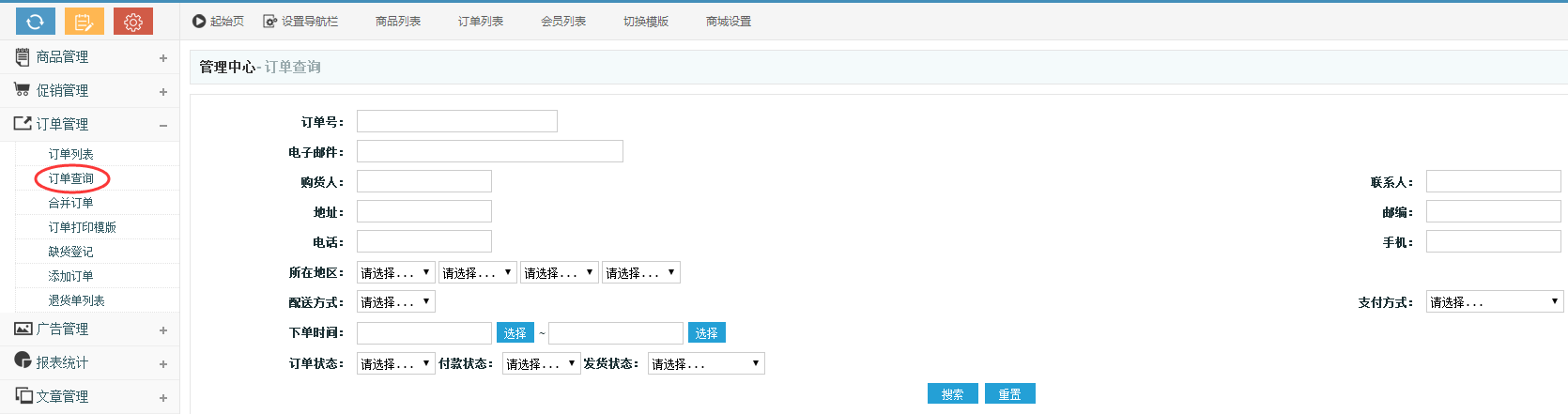 一、订单查询——订单的查询方式有很多种,可以根据订单信息或收货人信息来查询。