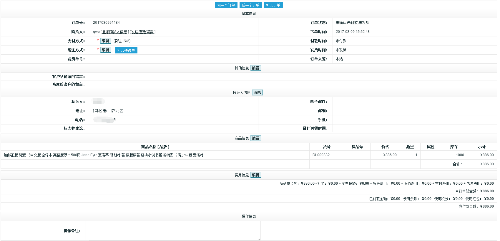 三、查看订单详情——在订单详情里可以修改订单显示出的有所有信息。