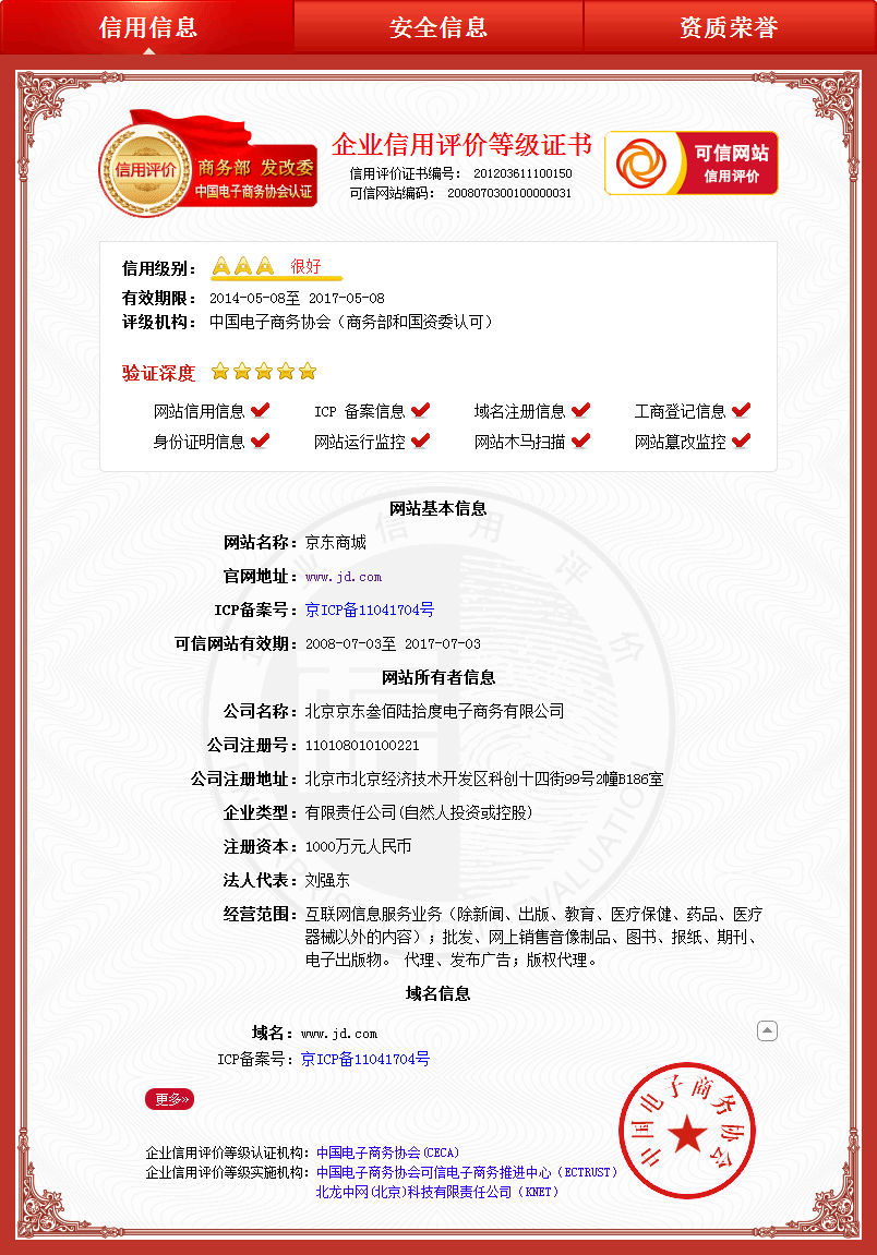 可信网站”验证是由中网实施,并由CNNIC提供技术支持的第三方权威身份验证服务。主要通过验证服务中心来面对最终用户提供可信网站验证的相关服务! 认证:1500元/年 一次性最多买10年,15000元/10年 |